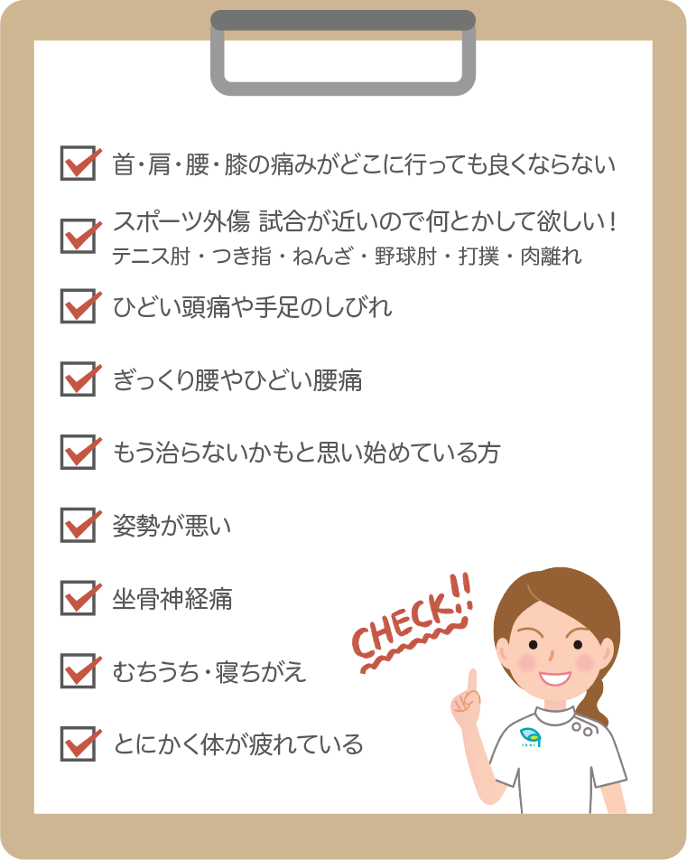 経験豊富な先生が、あなたの症状に合わせて徹底的に施術を行います。痛みの根本から治療します。