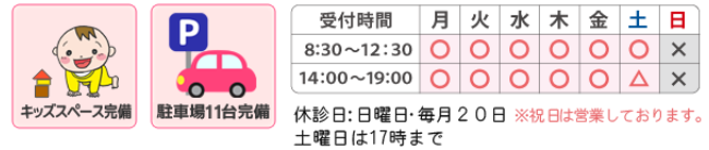 休診日:日曜日・毎月20日 ※祝日は営業しております。